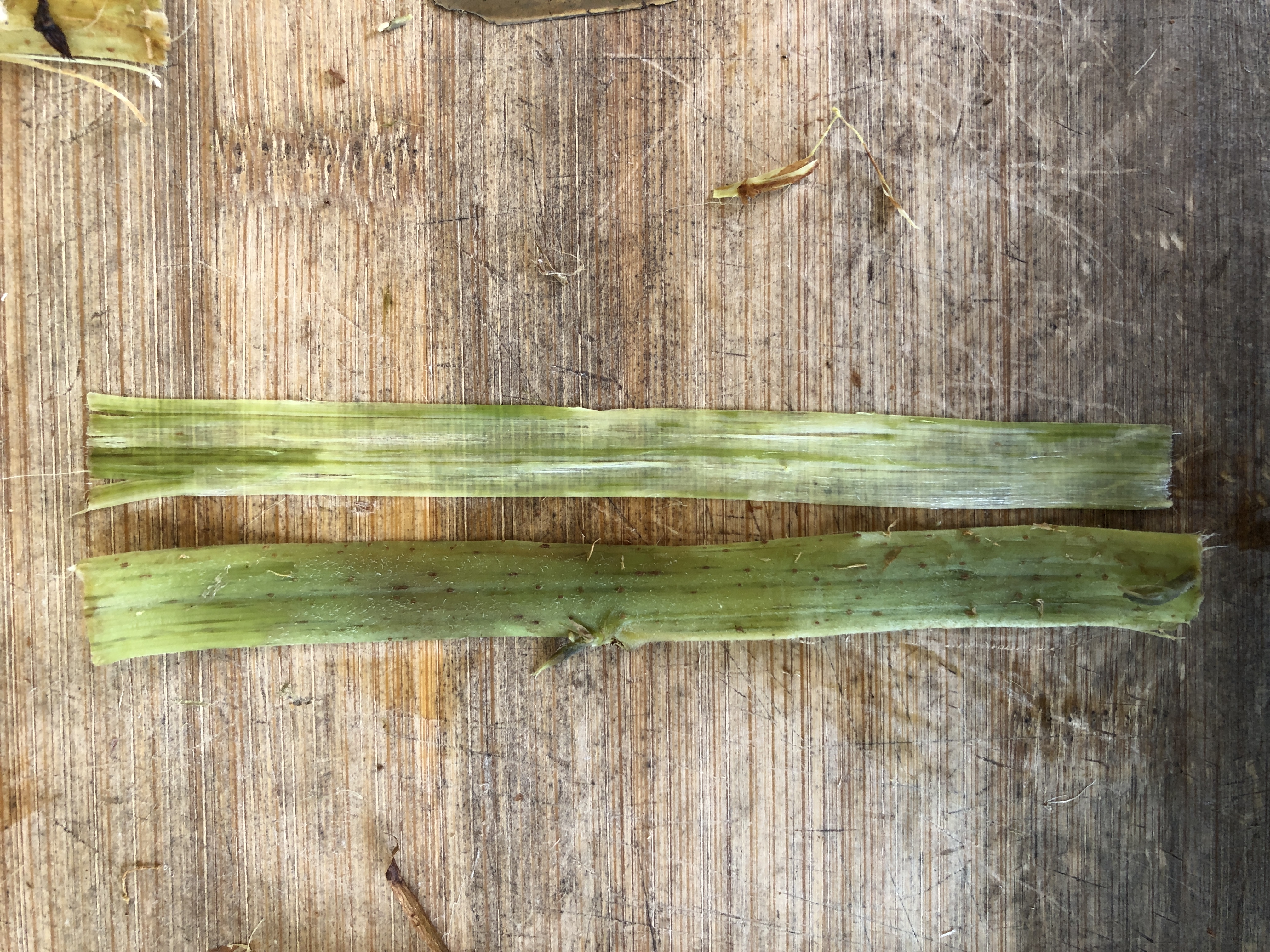 Break the lower end of the stem to separate inner branch and the outer layers of the plant (i.e. bark)