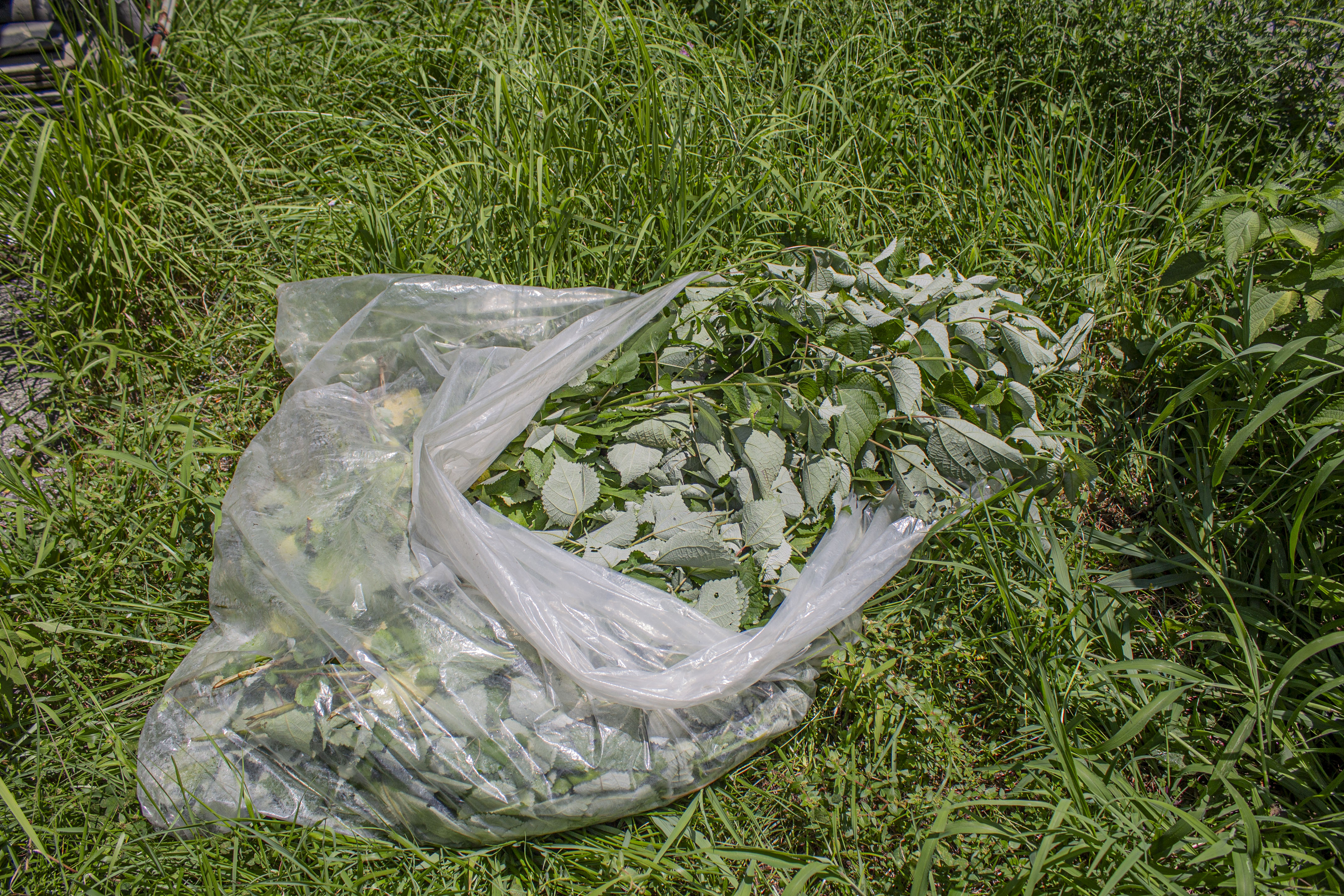 Collect material at the farm while weeding
